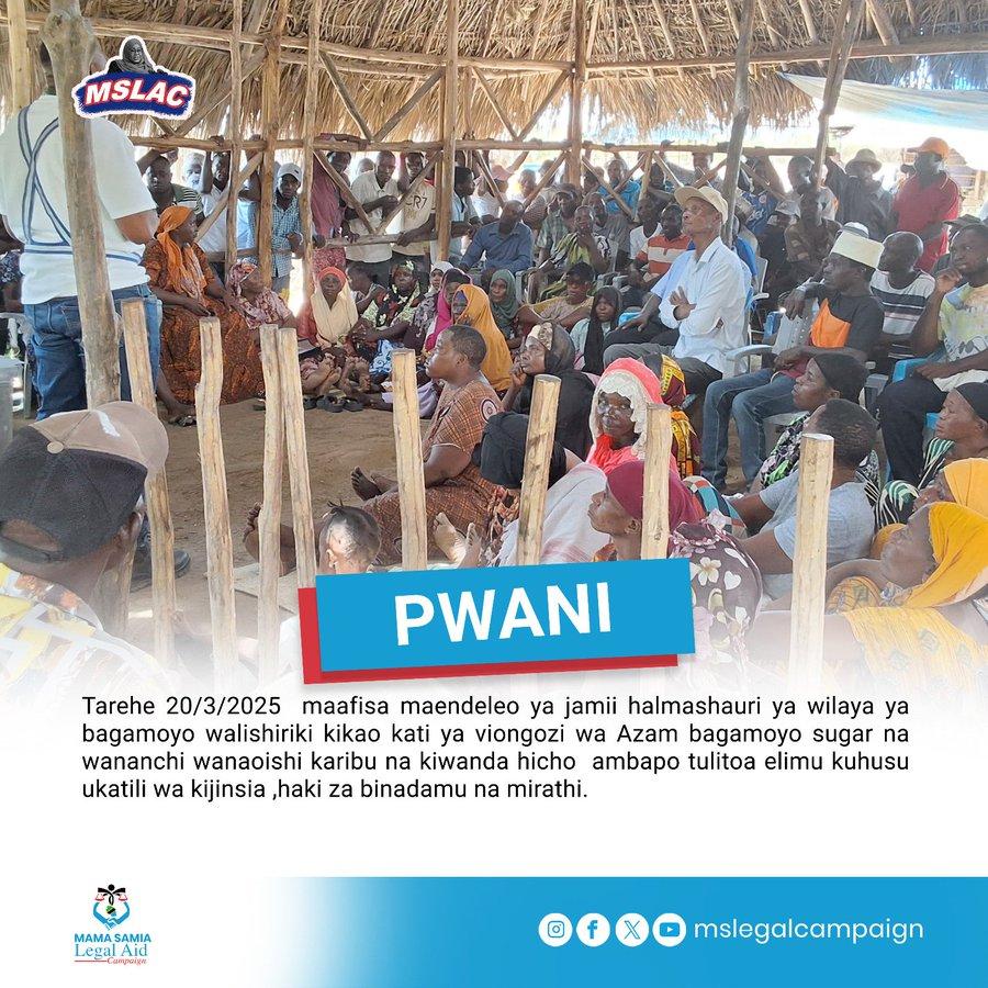 Maafisa maendeleo ya jamii halmashauri ya wilaya ya bagamoyo wameshiri kikao kati ya viongozi wa Azam bagamoyo sugar na wananchi wanaoishi karibu na kiwanda hicho ambapo tulitoa elimu kuhusu ukatili wa kijinsia ,haki za binadamu na mirathi.